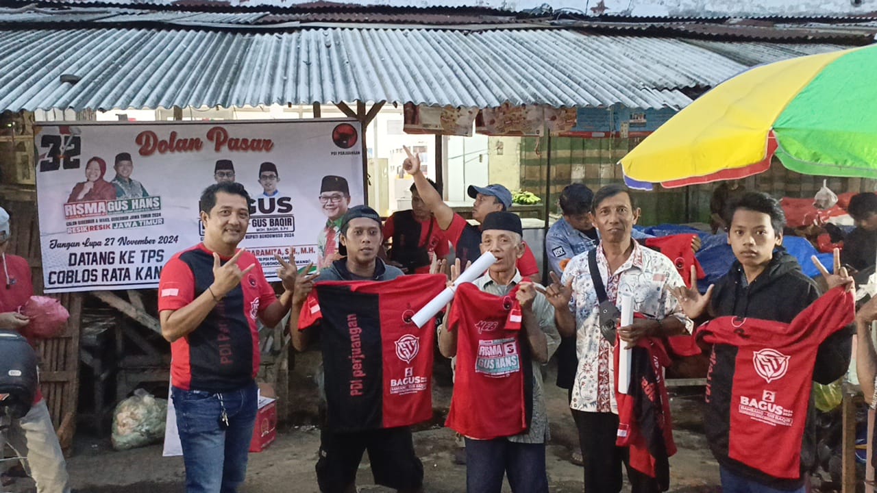 Senada dengan Dedy, Agus Efendi Korlap dari kegiatan “Dolan Pasar” ini menyebut, dengan melakukan aksi blusukan ke pasar pihaknya berharap akan semakin banyak masyarakat yang mengenal, serta memilih Pasangan Risma-Gus Hans dan Bambang Soekwanto-Gus Bakir pada waktu hari pencoblosan 27 November 2024 nanti.