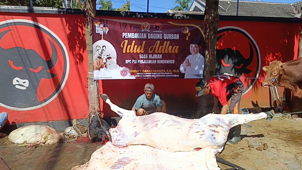 “Sudah menjadi agenda rutin kami di setiap tahunnya, membantu Mas Sonny menyalurkan daging kurban untuk struktural partai, relawan, simpatisan dan warga sekitar, selain kami dirumah aspirasi, dalam pembagian paket daging kurban ini, Mas Sonny juga melibatkan kawan-kawan DPC PDI Perjuangan, di tiap-tiap Kabupaten yang ada di Dapil III Jatim,” kata Dedy.