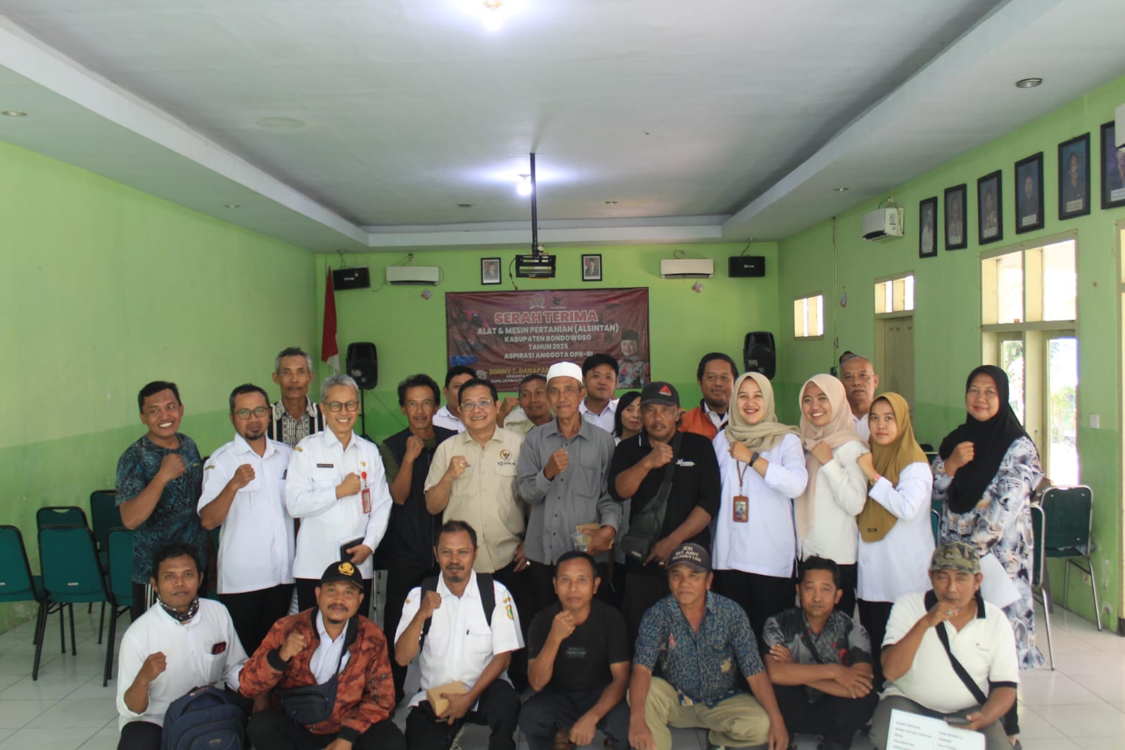 Penyerahan alat dan mesin pertanian (Alsintan), berupa 12 unit Handtraktor, 2 unit Traktor Roda 4, dan 60 unit Handsprayer yang dibagikan pada hari ini, merupakan buah aspirasi dari Sonny T. Danaparamita selaku anggota Komisi IV DPR RI, yang disalurkan melalui Dinas Pertanian Kabupaten Bondowoso untuk kemudian dibagikan kepada para kelompok tani di Kabupaten Bondowoso.